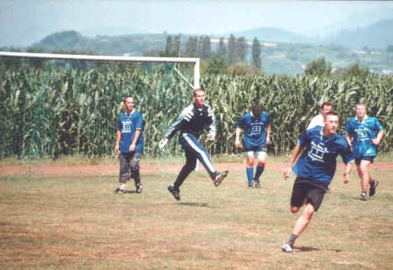 Auserwählte Funktionäre und Spieler versuchen kurz vor dem Spiel vergeblich Kraft in der Ägäis zu tanken !