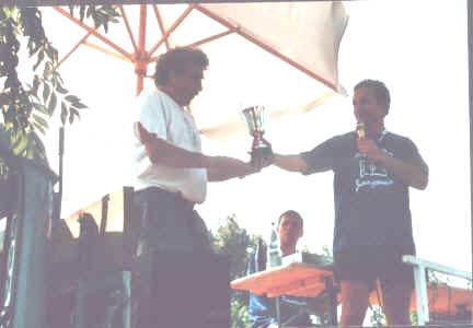 Unter dem dem Beifall der Massen überreicht Manager Kaufmann den Pokal, das heißbeliebte "Flittchen" erstmalig an Trainerlegende Günter Ditzenbach.